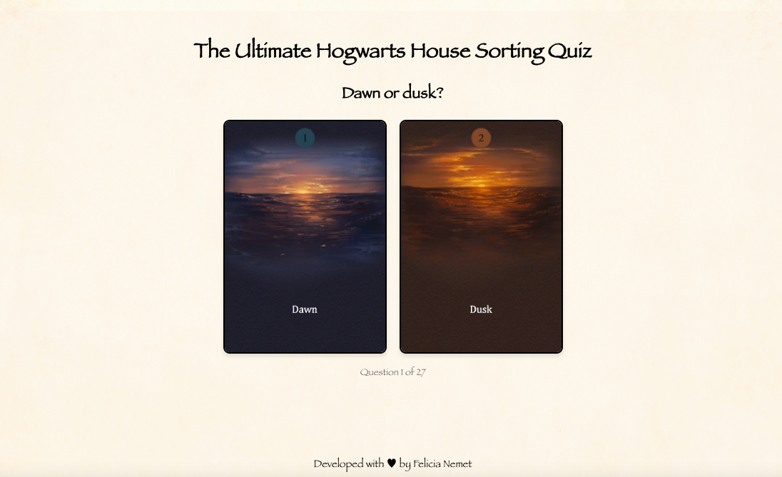 This project was made for fun, I love Harry Potter and felt like making my own Hogwarts House Sorting Quiz.
